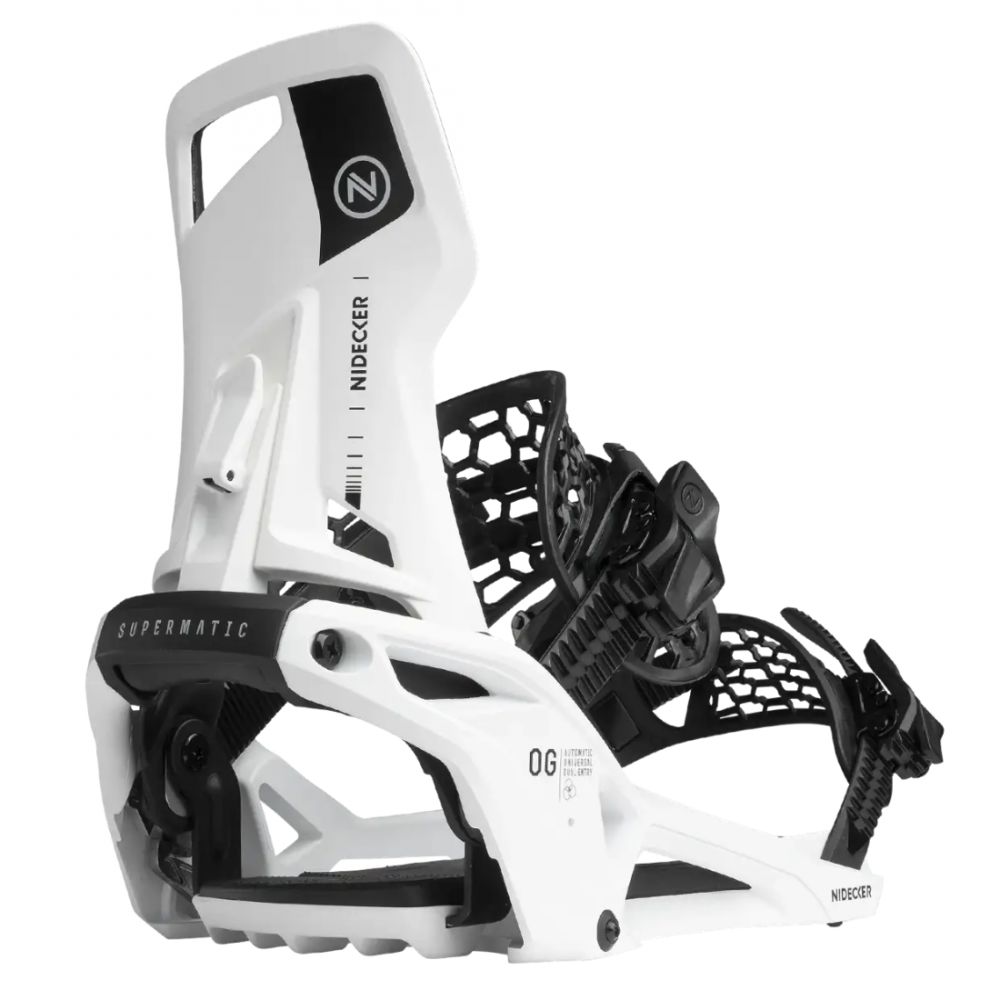 Les fixations Nidecker OG Supermatic 2026 offrent un système de chaussage automatique compatible avec toutes les chaussures, un flex polyvalent, des straps haut de gamme et une compatibilité universelle.