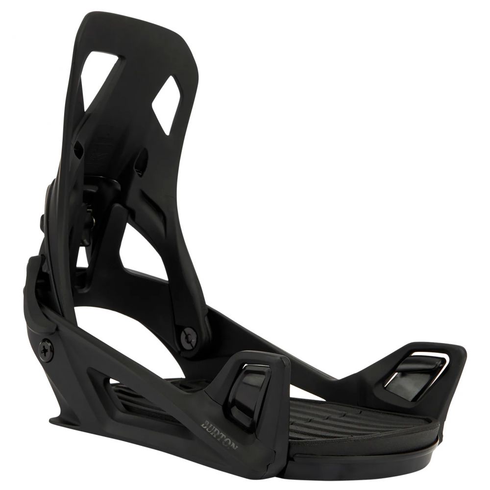 Les fixations pour snowboard Step On® Re:Flex pour homme de Burton offrent un système d’attache boot-fixation intuitif pour les riders à la recherche d’un modèle pratique et performant. Les trois points de connexion, deux à la pointe, un à la cheville, offrent un niveau de sécurité, de simplicité et de contrôle de la planche inégalé. Les crochets avant 2,0 permettent un chaussage réactif, et le levier de desserrage rapide sur le spoiler assure un retrait rapide et simple. Universellement compatibles avec tous les principaux systèmes de montage de snowboard, notamment les modèles 4x4, 3D®, et The Channel®.